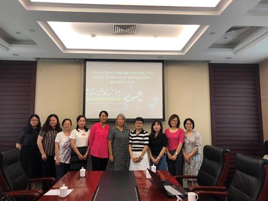 应比较语言学团队负责人张奕副院长邀请,奥克兰理工大学文化与语言学院院长Sharon Harvey博士于2019年7月19日上午9:30在国际会议中心第四会议室进行题为“Intercultural Communication in Language Teacher Education”的讲座。比较语言学团队成员及学院教师参加,讲座由副院长张奕教授主持。