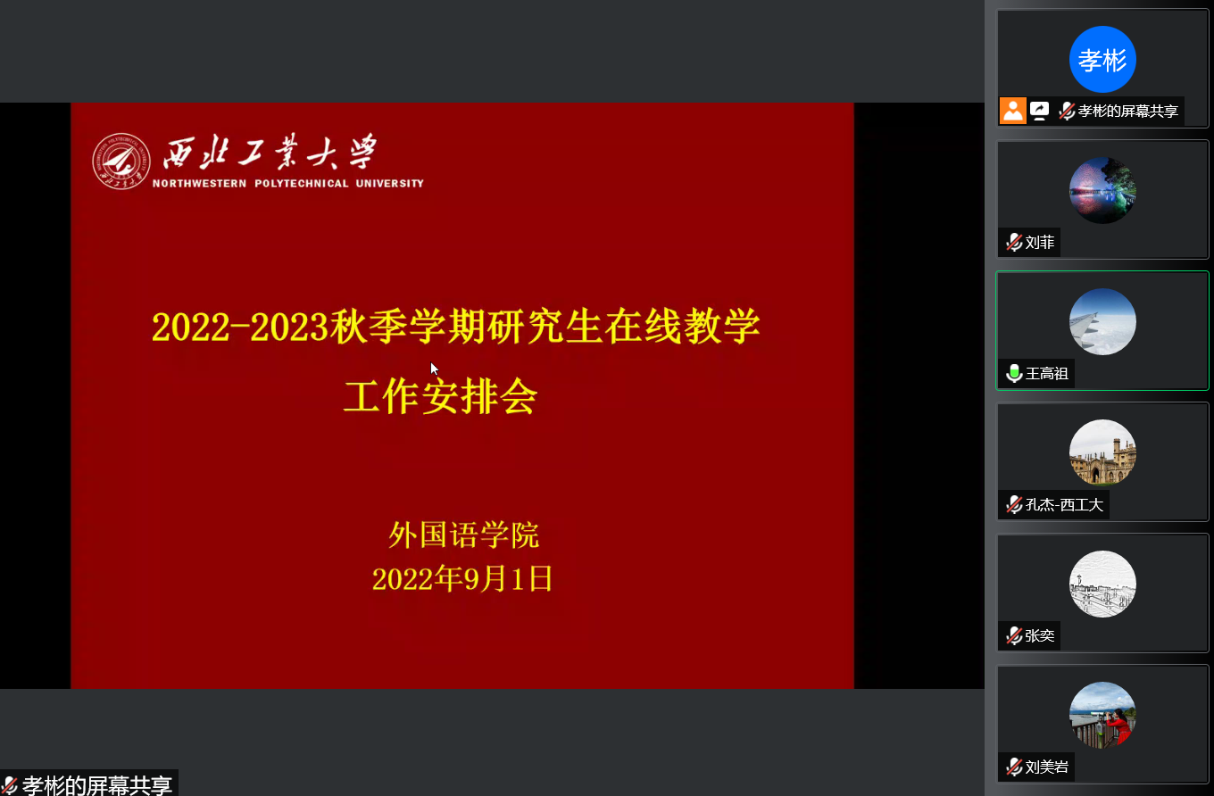 在腾讯会议平台召开2022-2023秋季学期研究生在线教学工作安排会。院长孔杰、院党委书记王高祖、全体研究生任课教师参加了此次会议。会议由副院长张奕主持。