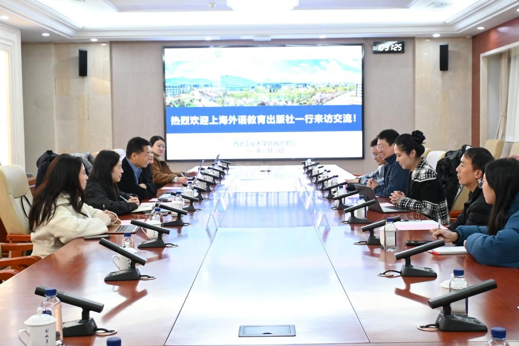 交流伊始,王高祖书记对外教社一行的到来表示热烈欢迎。他从学校整体定位、办学理念、学科特色及学院发展历程、师资队伍、科学研究、人才培养等方面作了详细介绍,并同与会人员观看了学校宣传片,了解西工大在国防科技、成果转化等领域的卓越成就。
